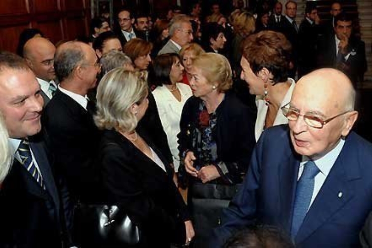 Il Presidente Giorgio Napolitano con la moglie Clio, durante l'incontro con la Comunità italiana in Grecia