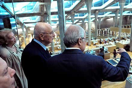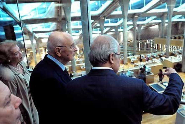 Il Presidente Giorgio Napolitano con la moglie Clio durante la visita alla Grande Area di Lettura del "Triangolo di Gallimaco" di Alessandria