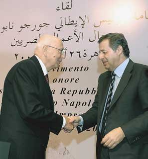 Il Presidente Giorgio Napolitano con il Ministro del Commercio e dell'Industria della Repubblica Araba d'Egitto Muhammad Rashid in occasione del ricevimento del Presidente della Repubblica Italiana