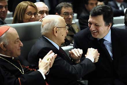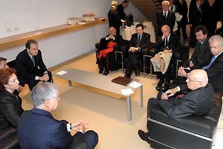 Il Presidente Napolitano con J. M. Barroso, Presidente della Commissione Europea ed il Cardinale D. Tettamanzi, Arcivescovo di Milano nell'inaugurazione del Campus dell'Università Commerciale Bocconi