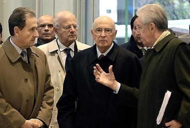 Il Presidente Giorgio Napolitano con il Presidente della Bocconi Mario Monti, il Rettore Angelo Provasoli all'arrivo al nuovo Campus dell'Università Commerciale Bocconi