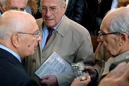 Il Presidente Giorgio Napolitano mostra una foto che lo ritrae insieme ai compagni di classe del Liceo-Ginnasio "Tito Livio"