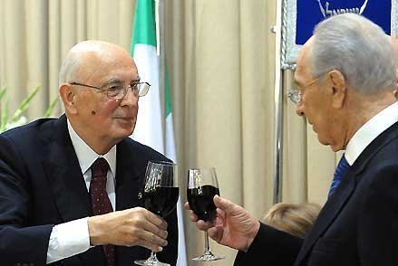 I Presidenti Napolitano e Peres brindano al termine dei loro interventi al Pranzo di Stato
