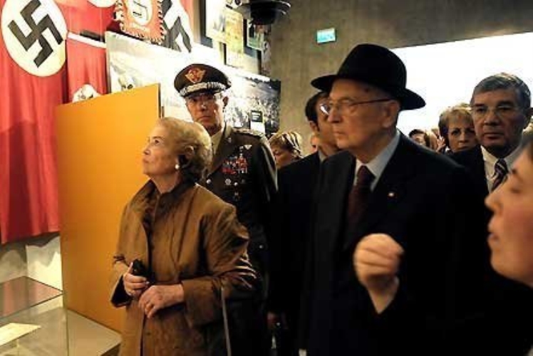 Il Presidente Giorgio Napolitano con la moglie Clio durante la visita al Museo dell'Olocausto