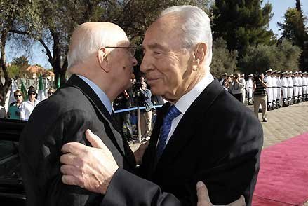 Il Presidente Giorgio Napolitano con il Presidente dello Stato d'Israele, Shimon Peres a Palazzo Presidenziale