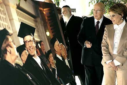 Il Presidente Giorgio Napolitano con Dalia Itzik, Presidente del Parlamento visita una Galleria fotografica di Personaggi Italiani