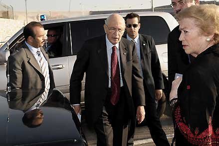 Il Presidente Giorgio Napolitano con la moglie Clio, al Check-point "Tomba di Rachele"