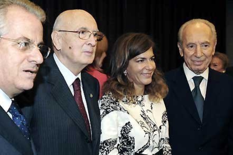 Il Presidente Giorgio Napolitano con il Presidente Peres, il Ministro Scajola ed il Presidente di Confindustria Marcegaglia, al termine del Businnes Forum organizzato da Confindustria ABI e ICE