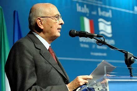 Il Presidente Giorgio Napolitano durante il suo intervento al Business Forum organizzato da Confindustria, ABI ed ICE