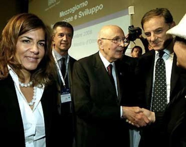 Il Presidente Giorgio Napolitano con Emma Marcegaglia, Presidente della Confindustria e Gianni Lettieri, Presidente dell'Unione Industriali di Napoli.