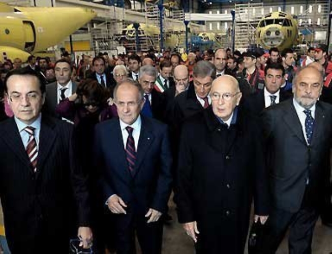 Il Presidente Giorgio Napolitano con Pierfrancesco Guarguaglini, Presidente ed Amministratore Delegato di Finmecanica, Giovanni Bertolone e Giorgio Zappa, Amministratori Delegati di Alenia Aeronautica