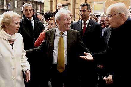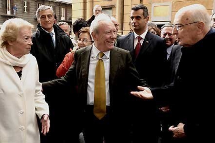 Il Presidente Giorgio Napolitano con la moglie Clio accolti nella nuova Sede, dal Presidente della Fondazione "Mezzogiorno Europa" Andrea Geremicca