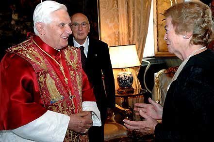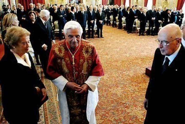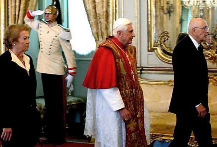 Il Sommo Pontefice Benedetto XVI, il Capo dello Stato Giorgio Napolitano e la moglie Clio in occasione della Visita Ufficiale