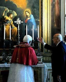 Il Presidente Giorgio Napolitano con il Sommo Pontefice Benedetto XVI nella Cappella dell'Annunziata