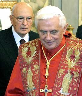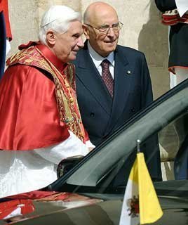 Il Presidente Giorgio Napolitano con Sua Santità Benedetto XVI° in visita Ufficiale al Quirinale