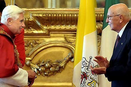 Il Presidente Giorgio Napolitano con il Sommo Pontefice Benedetto XVI in occasione della Visita Ufficiale