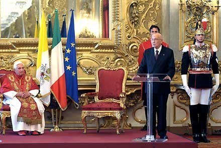 Il Presidente Giorgio Napolitano nle corso del discorso di Sua Santità Benedetto XVI, in visita ufficiale
