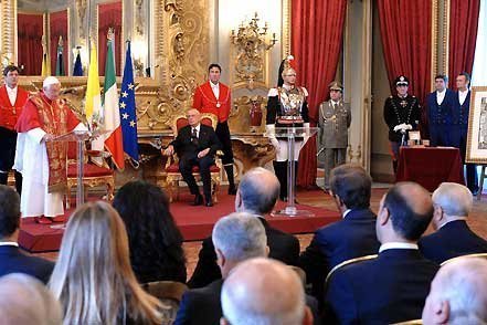 Il Presidente Giorgio Napolitano rivolge il suo indirizzo di saluto a S.S. Benedetto XVI, in occasione della visita ufficiale
