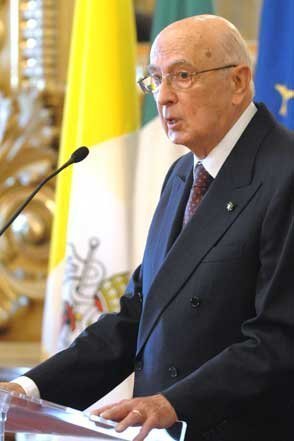 Il Presidente Giorgio Napolitano durante il suo discorso in occasione della Visita Ufficiale del Santo Padre al Quirinale