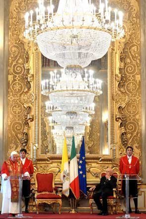 Il Presidente Giorgio Napolitano con il Sommo Pontefice, Benedetto XVI, in occasione della Visita Ufficiale al Quirinale