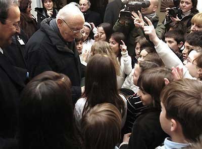 Il Presidente Napolitano al suo arrivo a Parma incontra i ragazzi della sezione IV D del Convitto Maria Luigia