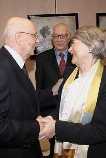 Il Presidente Napolitano con Giana Andreatta e Nino Galarco in occasione dela cerimonia di inaugurazione dell'Anno Accademico, durante la quale è stato scoperto un bassorilievo di Beniamino Andreatta