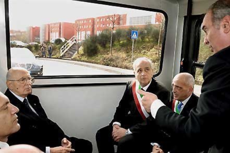 Il Presidente Napolitano durante la visita al "Campus" dell'Università degli Studi della Calabria, accompagnato dal Magnifico Rettore Giovanni Latorre, dai Sindaci di Cosenza e Rende e dal Prefetto