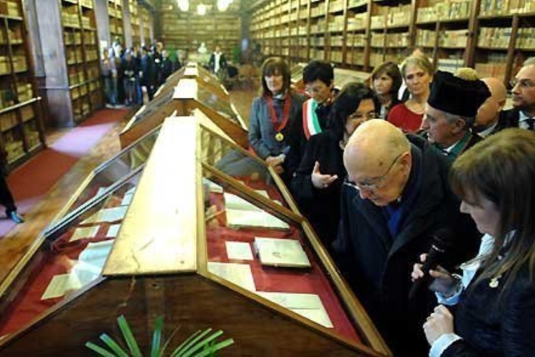 Il Presidente Giorgio Napolitano durante la visita alla Mostra su Foscolo
