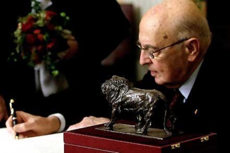 Il Presidente Giorgio Napolitano firma il Libro d'Onore, in occasione della visita al Municipio della Città