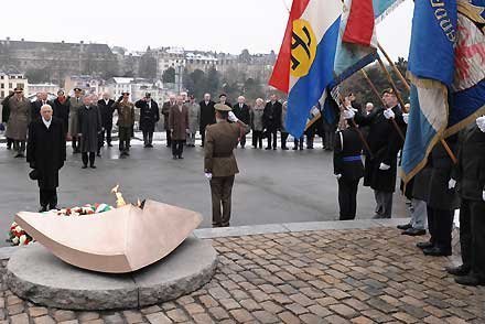 Il Presidente Giorgio Napolitano in raccoglimento davanti al Monumento Nazionale della Solidarietà