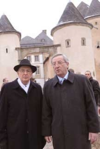 Il Presidente Giorgio Napolitano con Jean-Claude Juncker al suo arrivo al Castello di Bourlingster