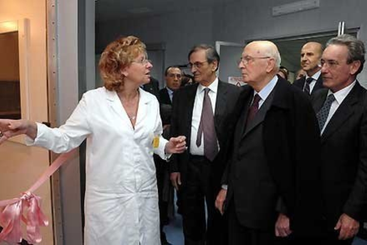 Il Presidente Giorgio Napolitano durante la visita all'Istituto Nazionale per lo Studio e la Cura dei Tumori - Fondazione "G. Pascale"