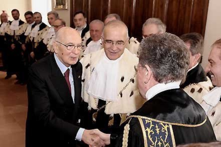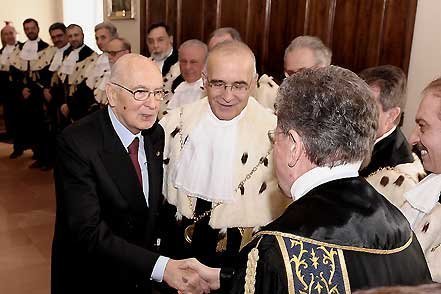 Il Presidente Giorgio Napolitano con i Presidi delle Facoltà Universitarie durante la presentazione da parte del Rettore Francesco Bistoni