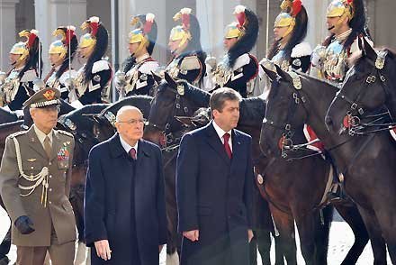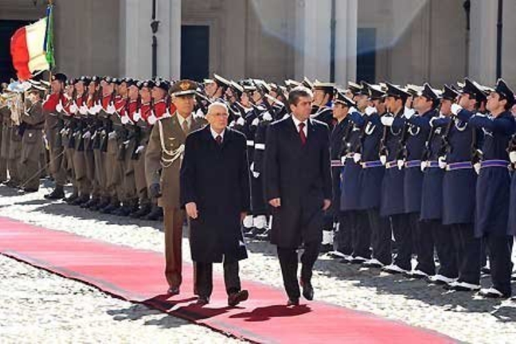 Il Presidente Giorgio Napolitano con Georgi Parvanov, Presidente della Repubblica di Bulgaria in visita di Stato in Italia, durante gli onori militari