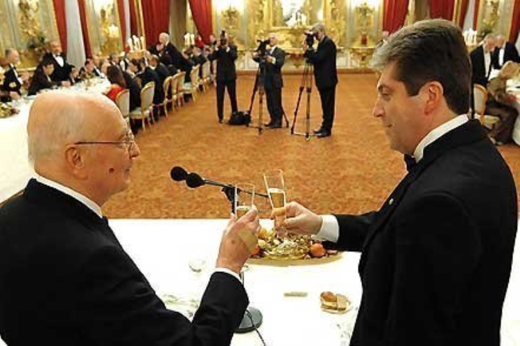 Brindisi dei due Capi di Stato, Napolitano e Parvanov, durante il pranzo in onore degli Illustri Ospiti