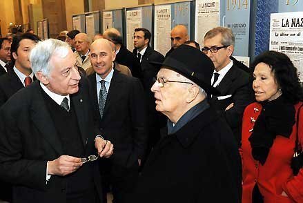 Il Presidente Giorgio Napolitano durante la visita alla Mostra "La Nazione: 150 anni di storia raccontati dalle nostre prime pagine"