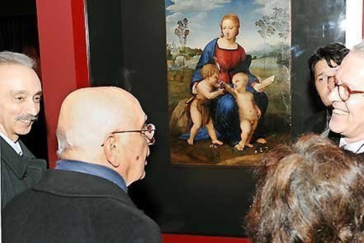 Il Presidente Giorgio Napolitano davanti all'opera di Raffaello, "La Madonna del Cardellino"