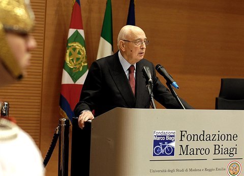 Il Presiente Giorgio Napolitano durante il suo intervento al Congresso internazionale in ricordo di Marco Biagi