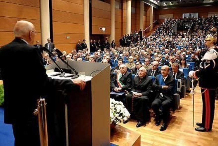 Il Presidente Giorgio Napolitano durante il suo intervento al Congresso Internazonale in ricordo di Marco Biagi