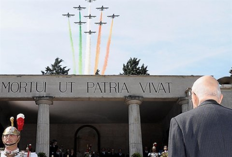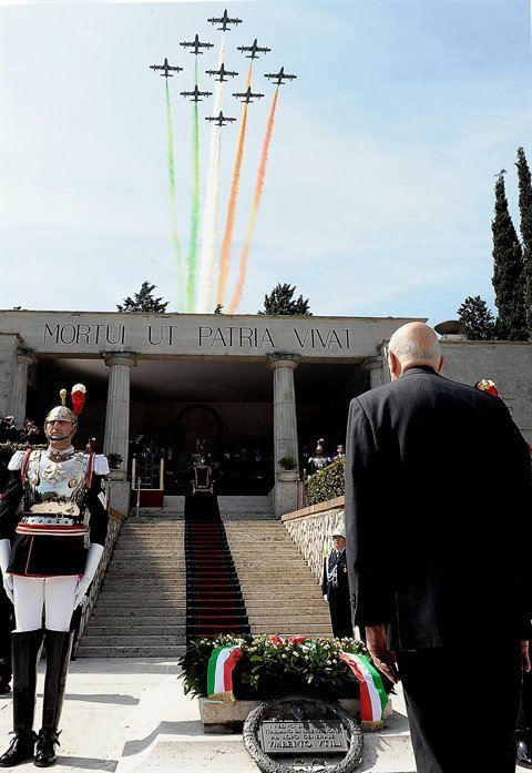 Il Presidente Giorgio Napolitano all'Altare della Patria in occasione del 64° anniversario della Liberazione