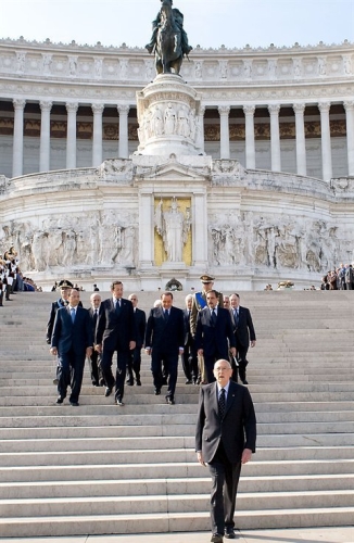 Il Presidente Giorgio Napolitano al termine della cerimonia all'Altare della Patria
