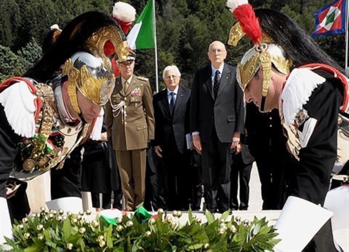Il Presidente Giorgio Napolitano a fianco il Consigliere Militare Rolando Mosca Moschini, al Sacrario per rendere omaggio ai Caduti per la Lotta di Liberazione