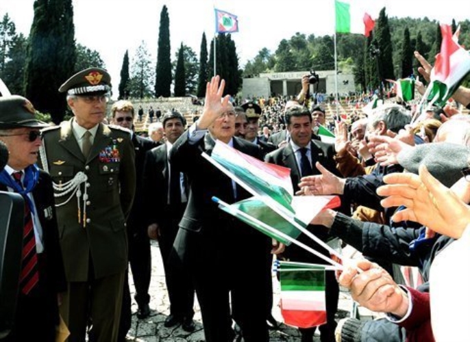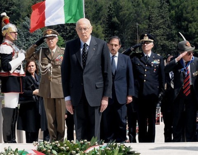 Il Presidente Giorgio Napolitano dopo aver reso omaggio al Sacrario dei Caduti