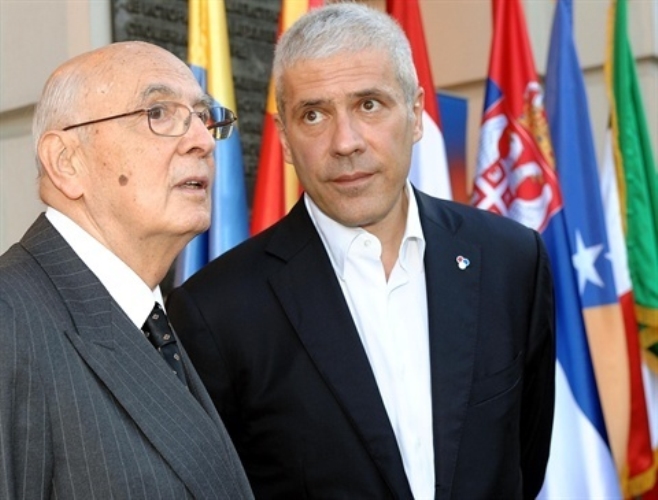 Il Presidente Giorgio Napolitano con il Presidente della Repubblica di Serbia, Boris Tadic, all'arrivo nella sede della Provincia Autonoma di Vojvodina