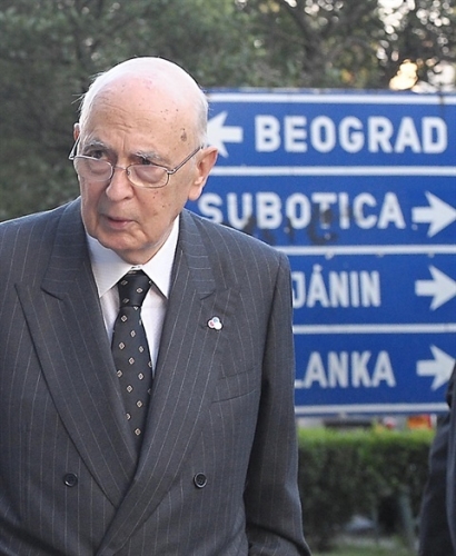 Il Presidente Giorgio Napolitano durante la breve passeggiata per raggiungere la sede dell'Assemblea della Provincia Autonoma di Vojvodina