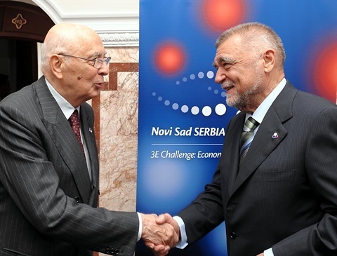 Il Presidente Giorgio Napolitano con il Presidente della Repubblica di Serbia Boris Tadic durante la ripresa dei lavori
