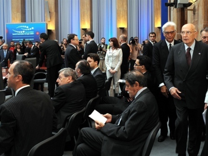 Il Presidente Giorgio Napolitano al tavolo di lavoro del XVI Vertice dei Capi di Stato dei Paesi dell'Europa Centrale