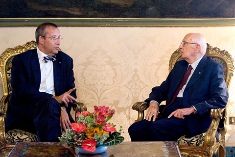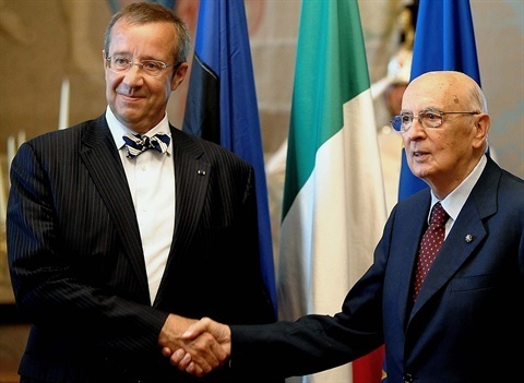 Il Presidente Giorgio Napolitano con il Presidente della Repubblica di Estonia Toomas Hendrik Ilves, in occasione della visita ufficiale in Italia