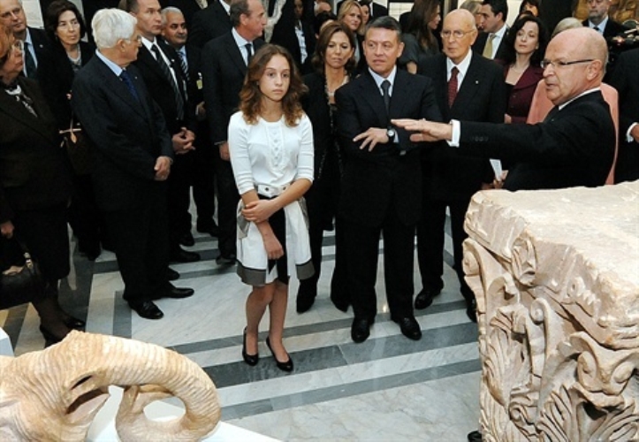 Il Presidente Giorgio Napolitano con S.M. il Re Abdullah II Ibn Al Hussein del Regno Hashemita di Giordania all'inaugurazione della Mostra "Giordania: crocevia di popoli e di culture"