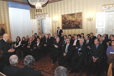 Il Presidente Giorgio Napolitano nel corso dell'incontro con i Rappresentanti dell'Associazione Piazza Fontana 12 dicembre 1969, del Comitato permananente antifascista, dell'Associazione Italiana Vittime del Terrorismo